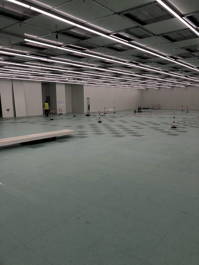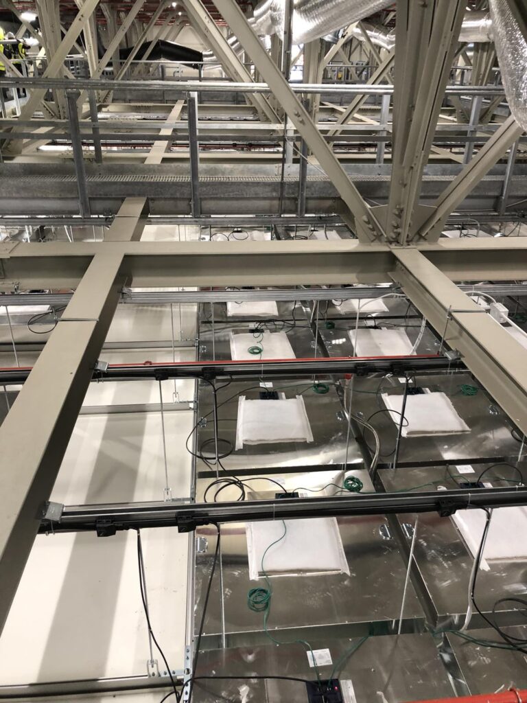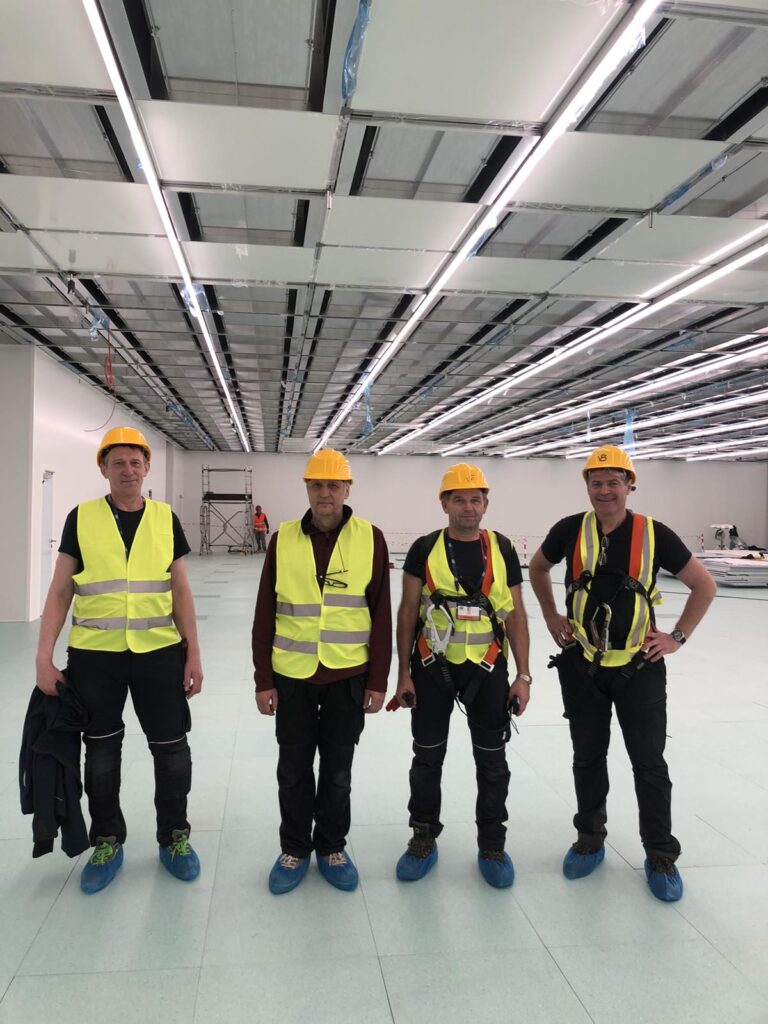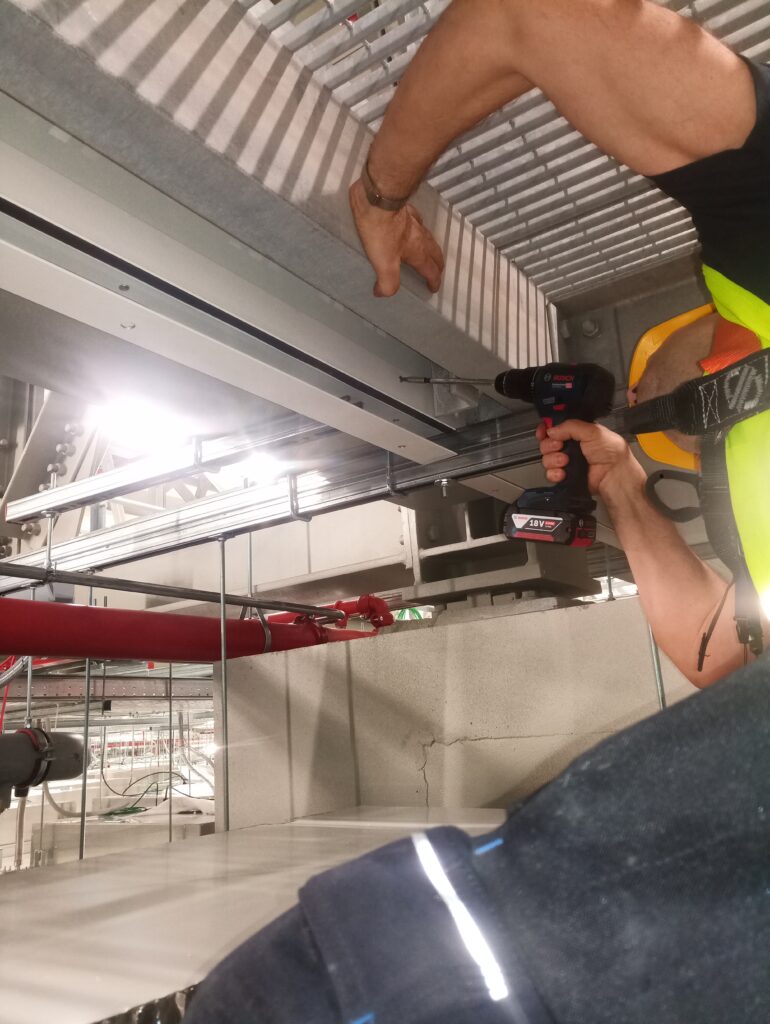 Installation of ceiling panels in an industrial project